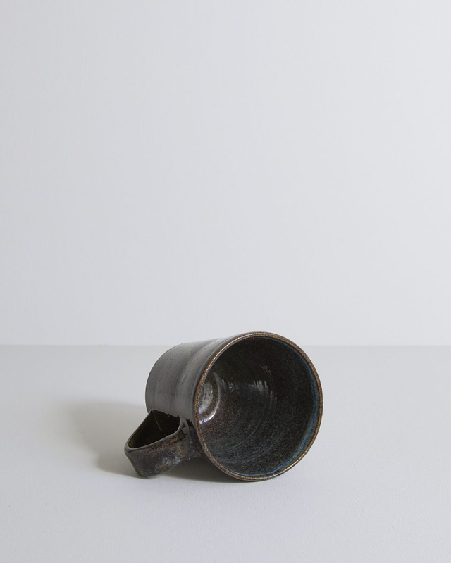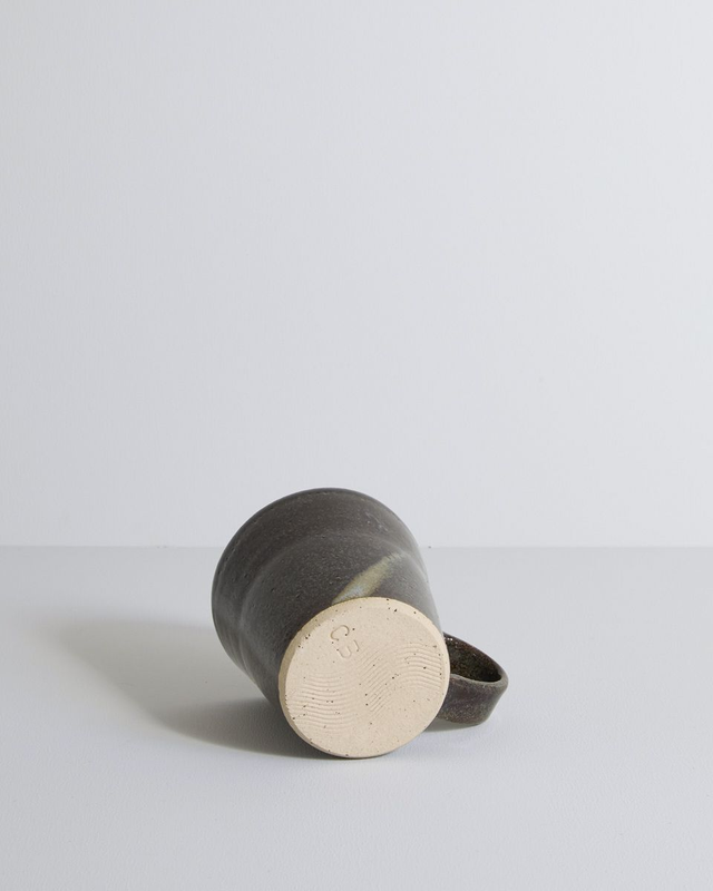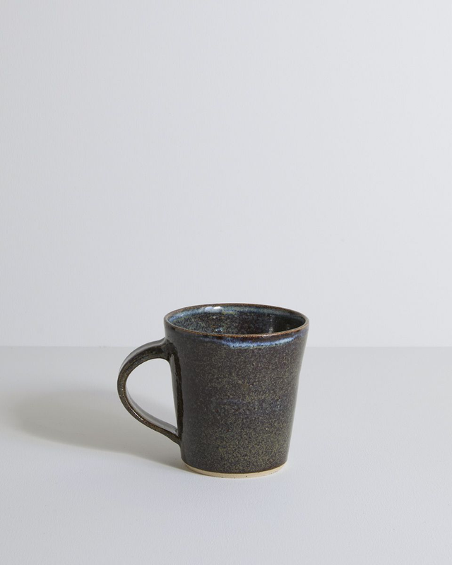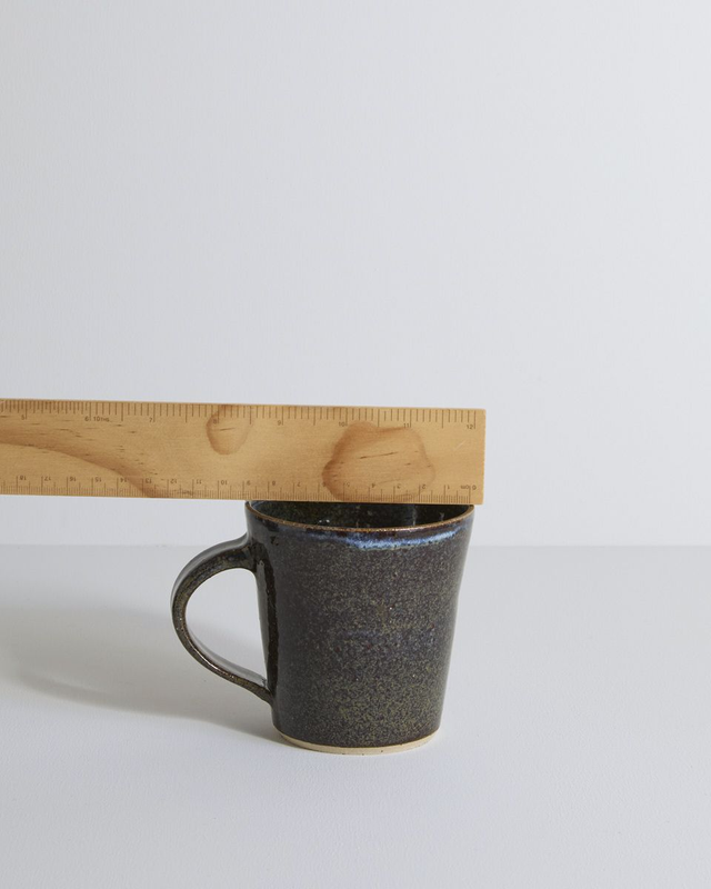 Crafted from a speckled buff clay, each mug is individually hand thrown and finished with a hand pulled handle. The "Blue Mist" glaze is hand dipped and highly variable, producing a beautiful spectrum of colours from rich dark browns to subtle hints of purple, blue, and soft hazy greens. Every firing brings a unique surprise, making no two mugs exactly alike.