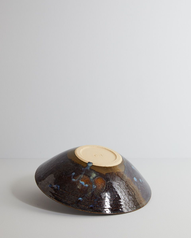 The glaze produces a stunning spectrum of colours, from deep browns to hints of purple, blue, and soft, hazy greens. Each firing brings unexpected results, making every bowl a unique piece full of character.