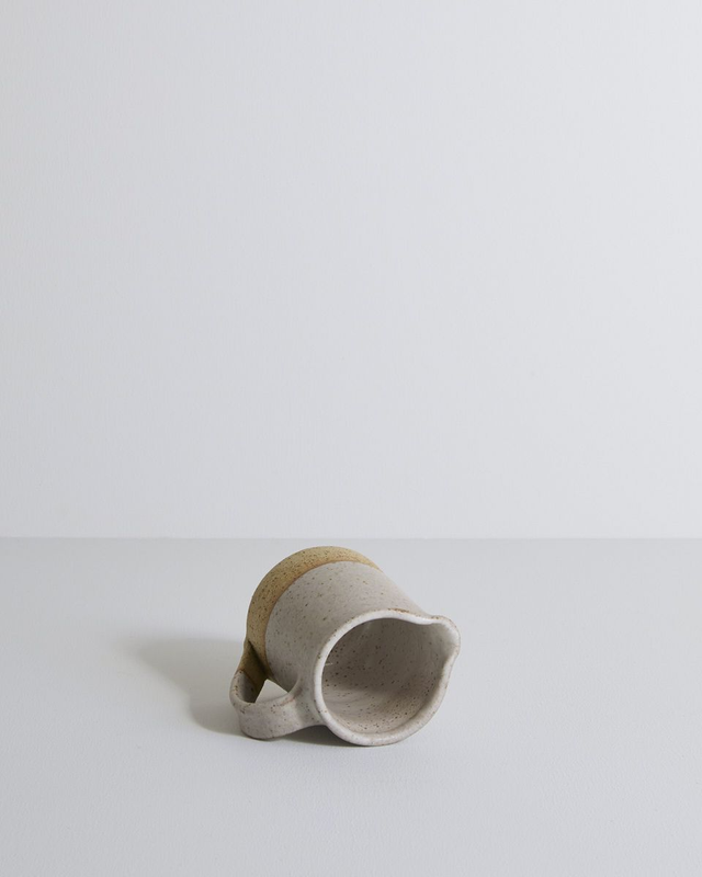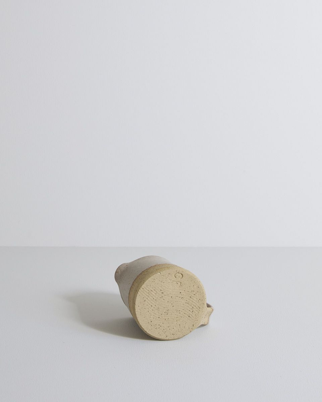 Small cream jug, perfect for serving a drop of your preferred milk or displaying a small bunch of fresh flowers. Hand thrown from speckled buff clay, it’s finished with a hand dipped matt white glaze that turns a slight buff colour once fired which makes each piece truly one of a kind.