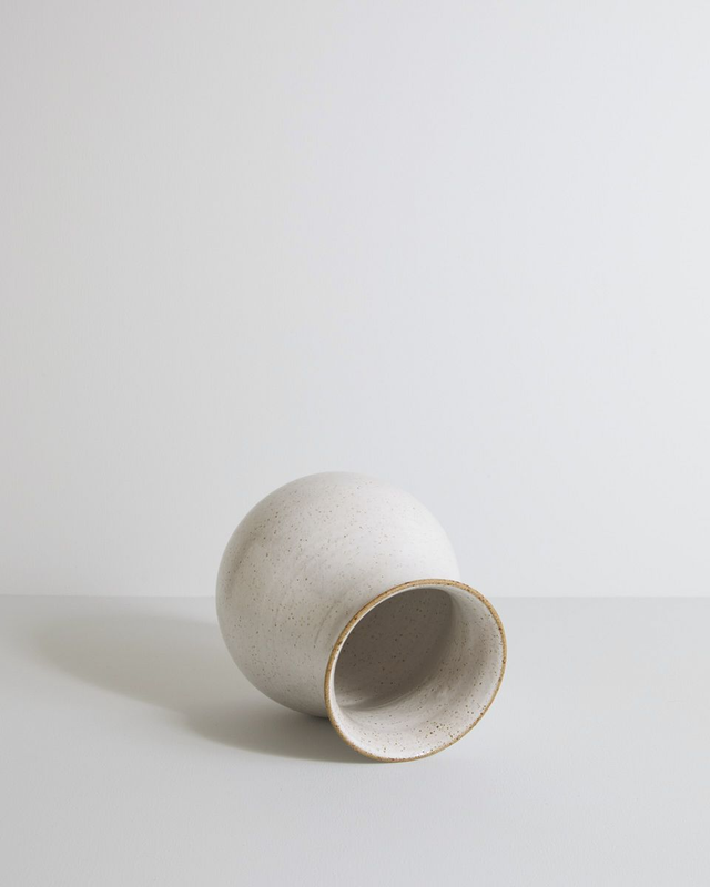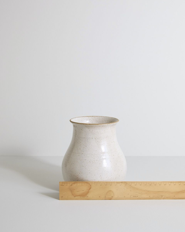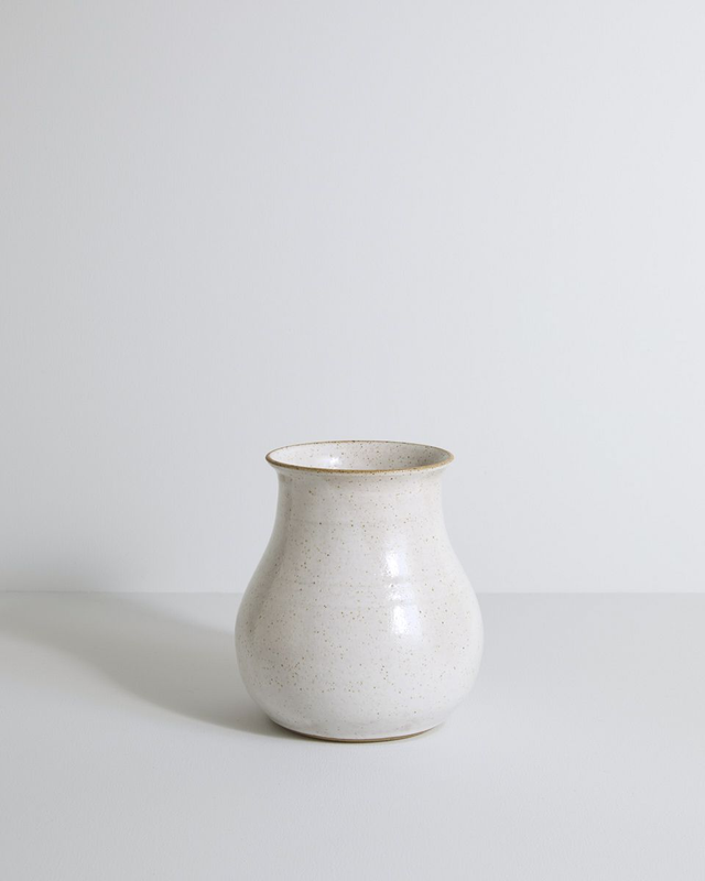 White Speckle Vase. Made on a buff clay body with a white gloss glaze. This stoneware vase is ideal for showing off your favourite blooms from the garden. As is the nature of hand thrown products they all have slight variations and irregularities to them which makes each product very individual and unique.